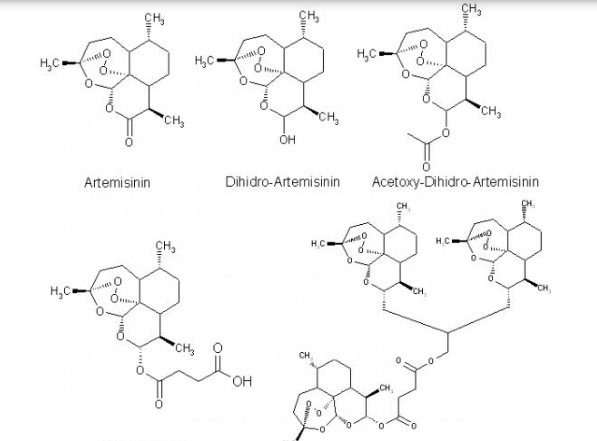 青蒿素难溶于水和油,目前已经已生产了几种常用的青蒿素衍生物,其中几种在国内有销售:蒿甲醚可溶于油,而青蒿琥酯(钠)可溶于水,双氢青蒿素,青蒿素,国内市场还开发了另一种化合物Arteether。青蒿素不会杀死次生动物,但会对恶性配子产生一定的作用。当它们在短疗程中单独使用时,作用时间短且复发率高。复发取决于治疗的剂量和持续时间以及疾病的严重程度。到目前为止,尚未发现恶性疟原虫患者对青蒿素的抗药性,但可以在动物模型中发展。